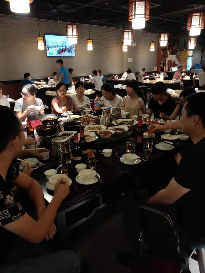 傍晚,公司所有員工一行來到湘楚小館,只見華燈璀璨,桌椅整潔,環(huán)境優(yōu)雅。我們自由落座,快樂滿滿地享受眼前的美酒佳肴,激情燃燒,暢談感言,互致祝賀,熱情洋溢的臉上像秋天綻放的菊花。隨著游總的到來,本次活動的晚餐也拉開序幕,由各部門新老員工互相介紹,公司領(lǐng)導(dǎo)也親切與每位新員工交談,進(jìn)行鼓勵。隨后游總跟大家嘮家常,講經(jīng)驗(yàn)讓大家感受到濃濃的家庭氣息,使整個聚餐充滿暖意。席間,同事們彼此交流起各自工作、生活中的趣事,氣氛十分熱烈,平日里交流有限的同事間頓生起濃厚的友誼。俗話說,辛苦討個快活吃,高興高興,快樂快樂……