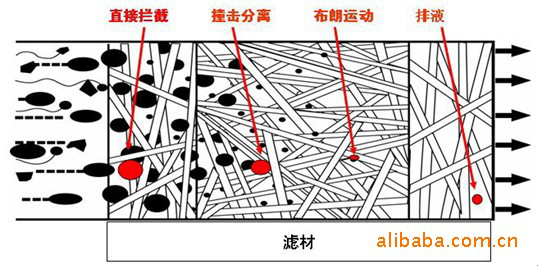 第一步,尺寸大于濾材間隙的輕體顆粒會被直接攔截濾材直接攔截在濾材表面層;